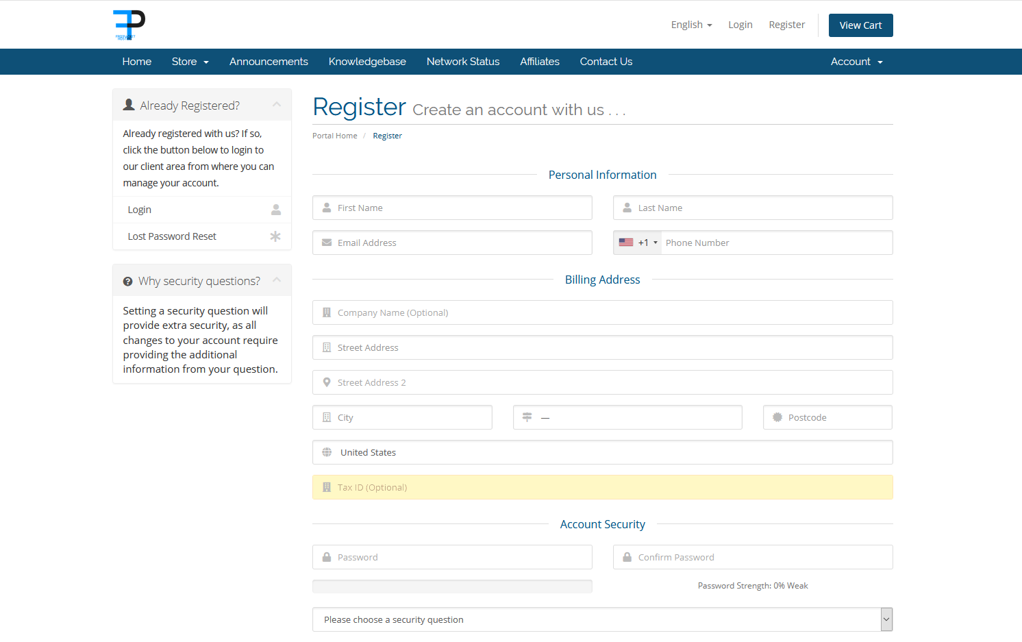 You will need to register on our Billing Portal at http://billing.freepacket.co/register.php